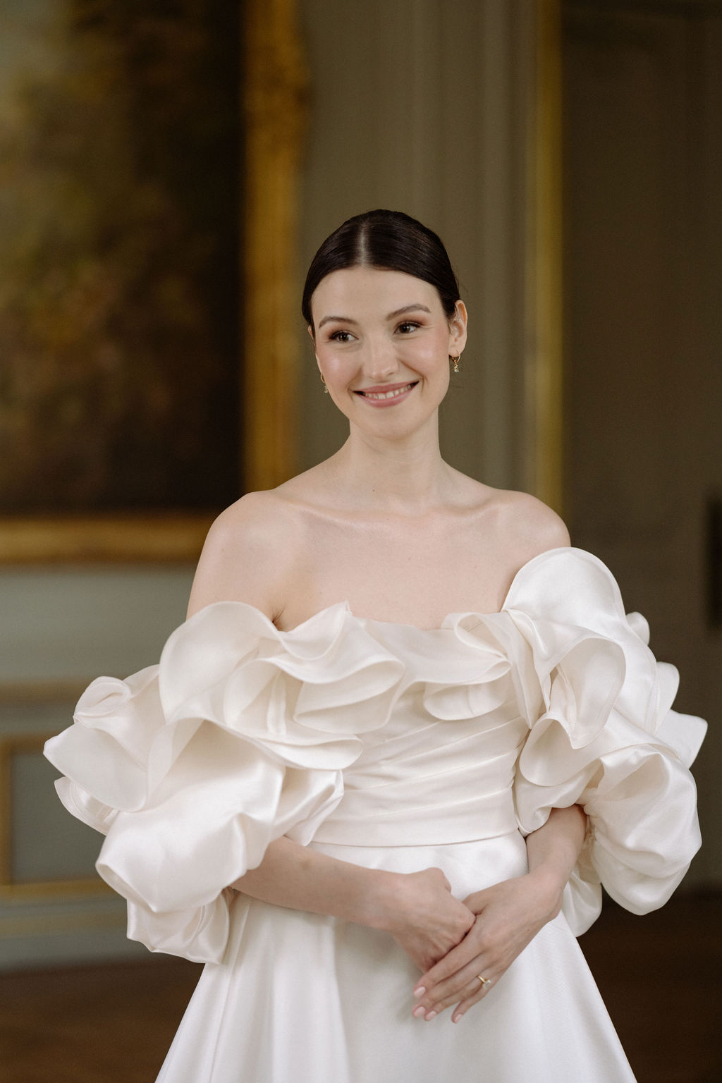 Und wenn ihr meint, das wäre schon alles: Nike hat nicht nur für den perfekten Look gesorgt, sondern auch noch dezent den Tag mit ihrer Mini‑Kamera festgehalten und – jetzt kommt’s – noch am selben Abend ein perfekt geschnittenes Video rübergeschickt! Sie hat ein unheimliches Gespür für die kleinen, zauberhaften Zwischenmomente. Ich bin so froh, dank ihr diese Momente für immer festgehalten zu haben. Nike könnte eine Hochzeit eigentlich im Alleingang machen: sie ist Hair‑ und Make‑up‑Artistin, Wedding‑Planerin und Videografin in einem – und dazu einfach der süßeste Mensch, den man sich vorstellen kann. Ich kann sie gar nicht genug empfehlen und würde sie immer wieder buchen.“